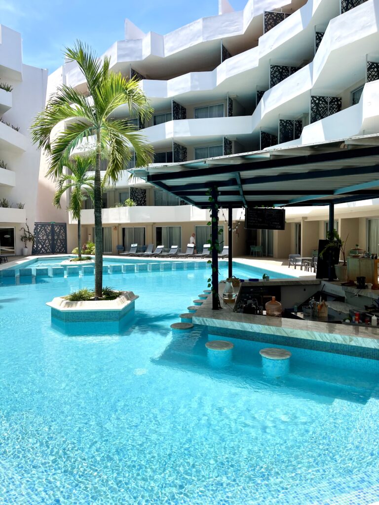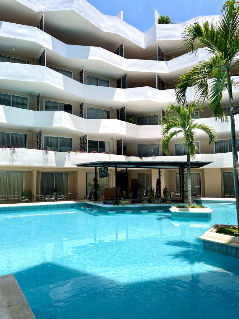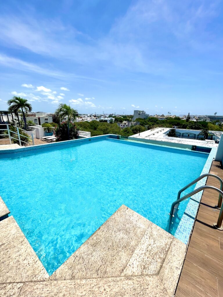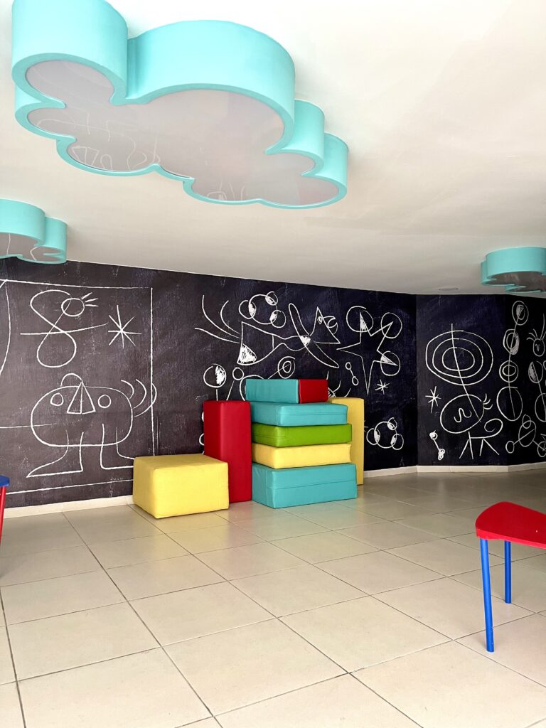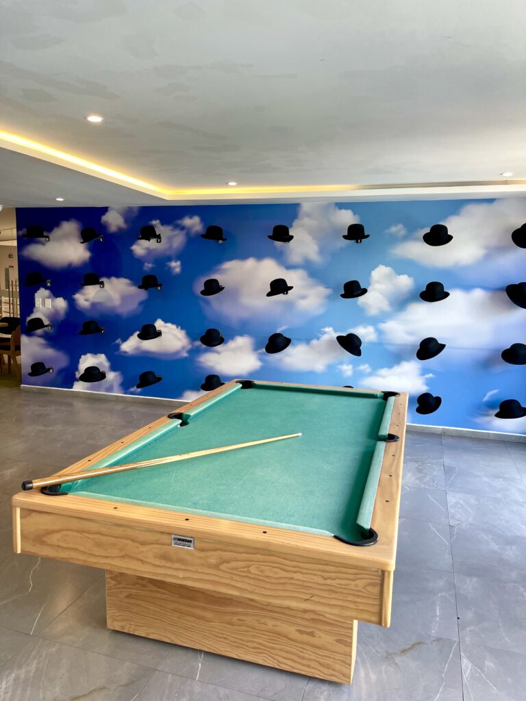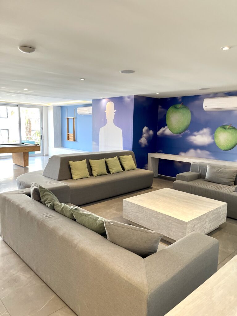 As a guest, you’ll have access to The Gallery Condos’ exclusive amenities, including two swimming pools, a gym, a kids’ club, a reading area, a game room, and an art gallery. These spaces are perfect for unwinding, socializing, or taking in the stunning Riviera Maya sunsets.