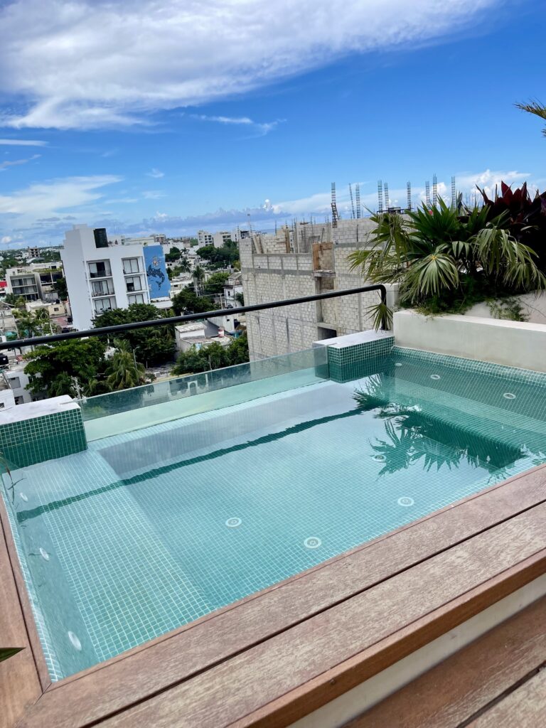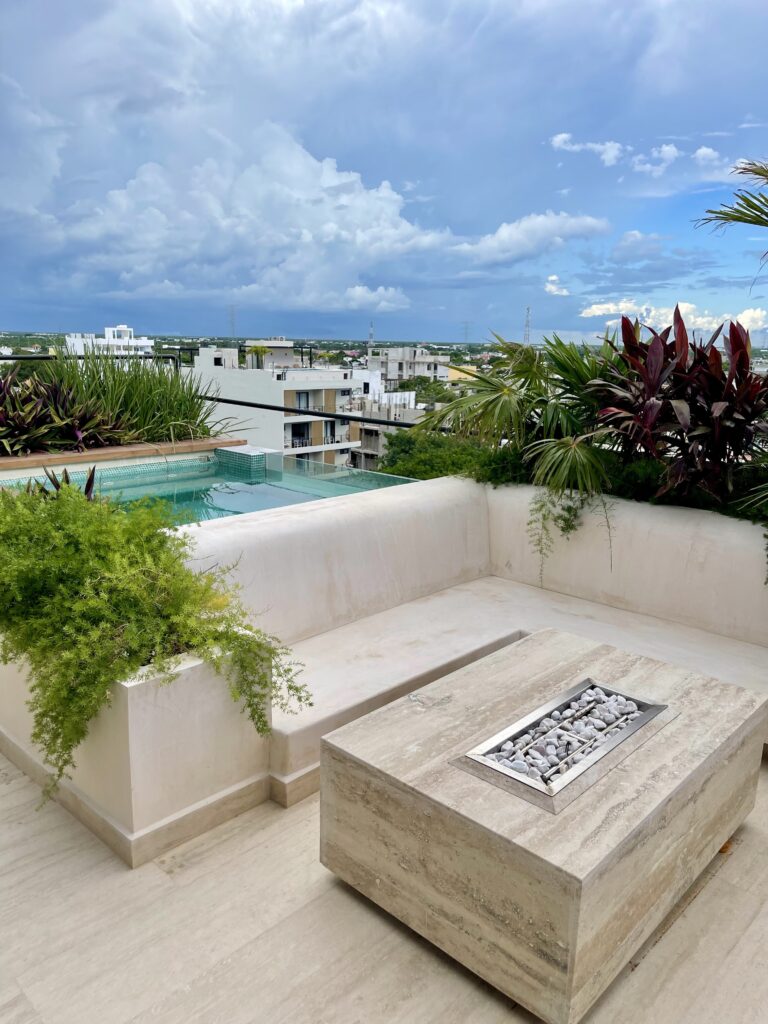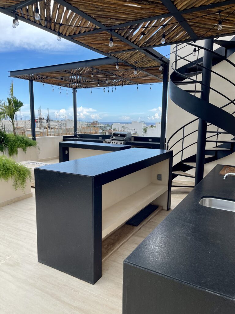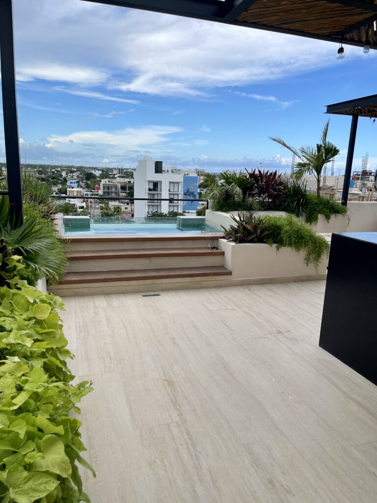 Additionally, you’ll have access to the common areas and amenities of the Jatsa Ha building, including a rooftop pool, jacuzzi, BBQ area, and outdoor relaxation spaces.