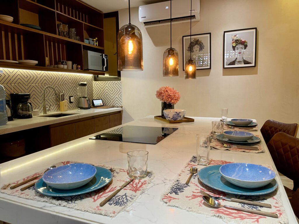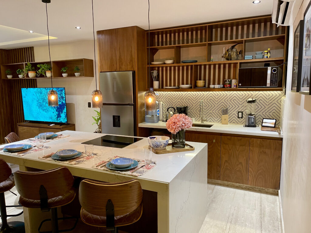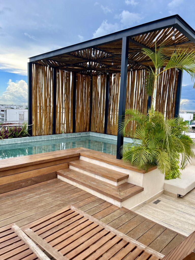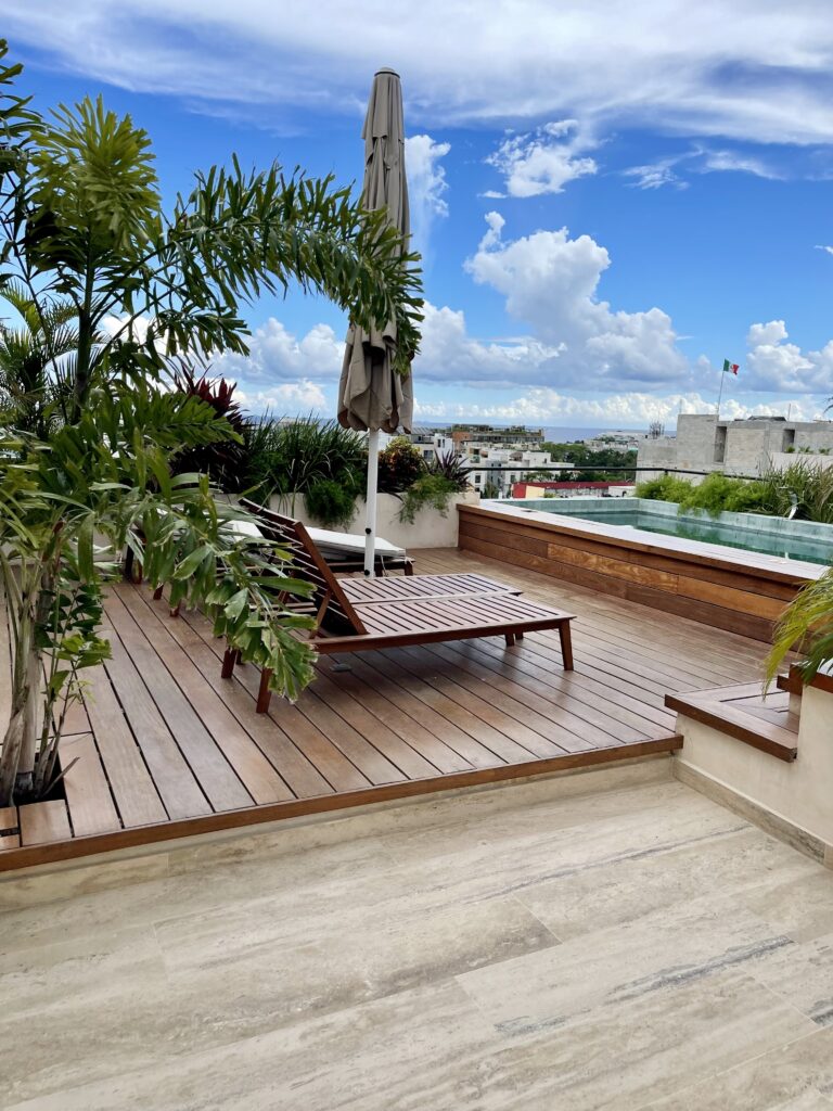 Additionally, you’ll have access to the common areas and amenities of the Jatsa Ha building, including a rooftop pool, jacuzzi, BBQ area, and outdoor relaxation spaces.