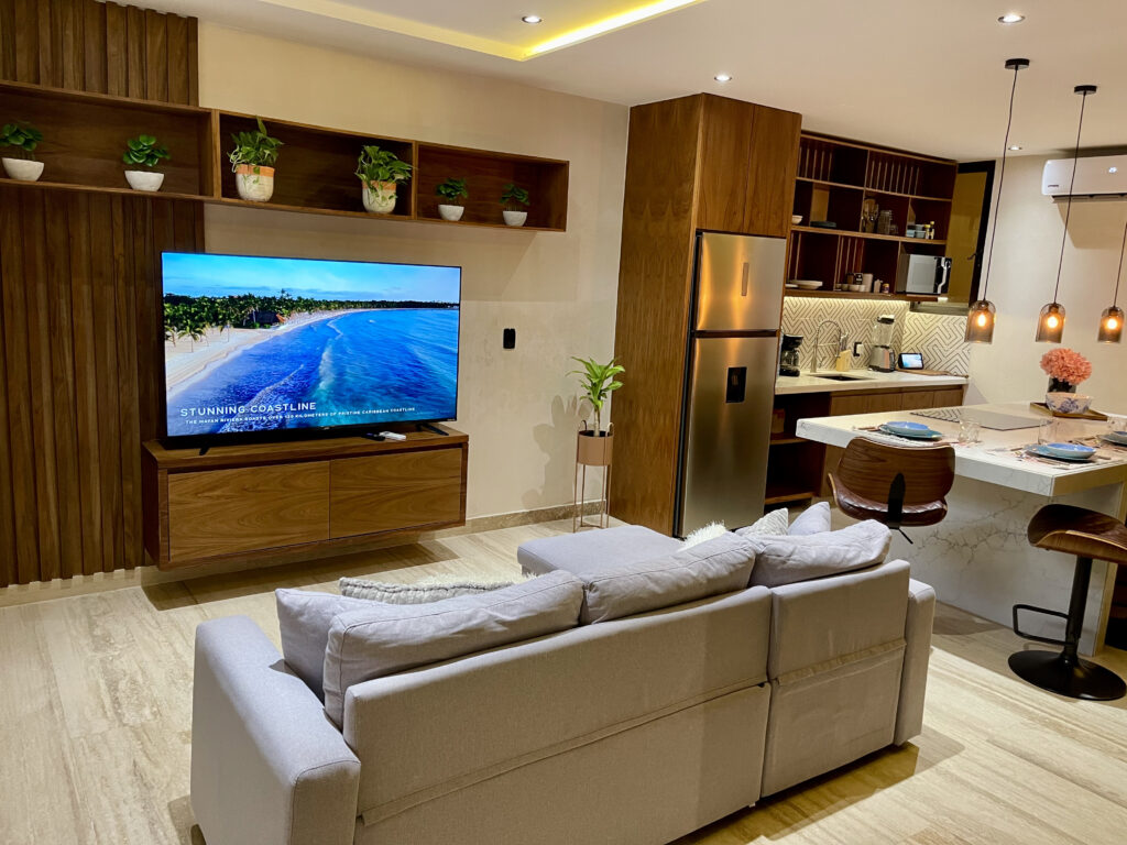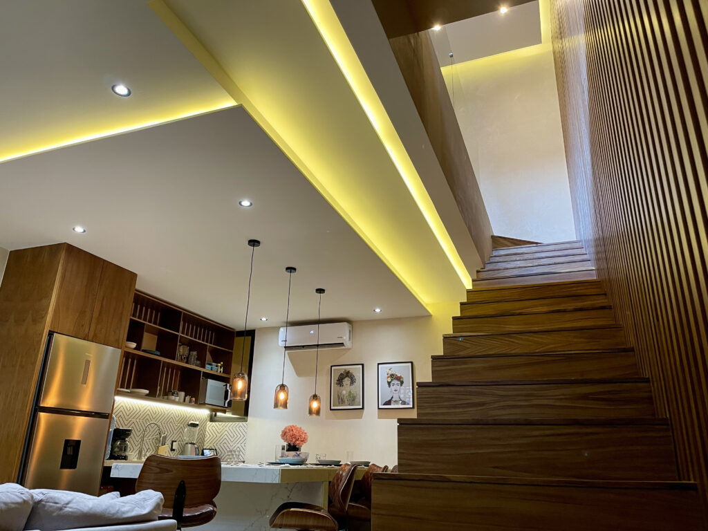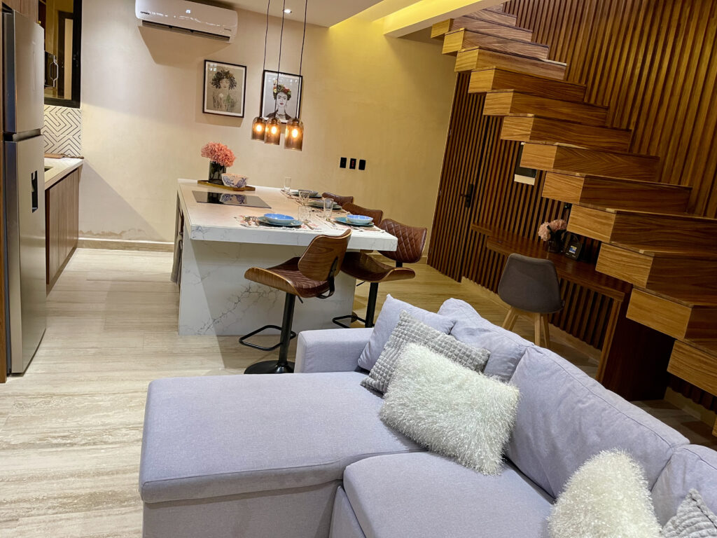 This stylish Loft located near the heart of Playa del Carmen, just two blocks from 5th Avenue and four blocks from the beach, offers the perfect blend of comfort and convenience. Fully furnished and equipped, it’s ideal for your stay with family or friends. Access the two story loft via an elevator or stairs.